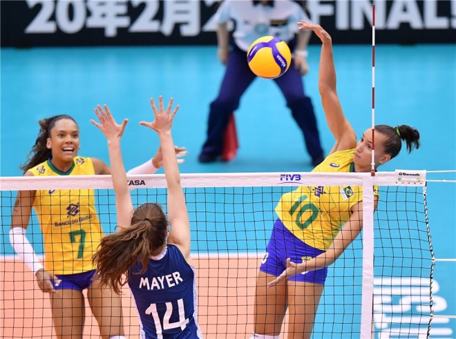 BRASIL Macris (2), Lorenne (10), Fabiana (9), Bia (5), Gabi (18), Amanda (11), Brait (L). Entraram: Roberta (0), Sheilla (6), Mara (0), Gabi Cândido (0), Carol (3). Técnico: José Roberto Guimarães