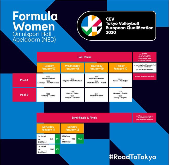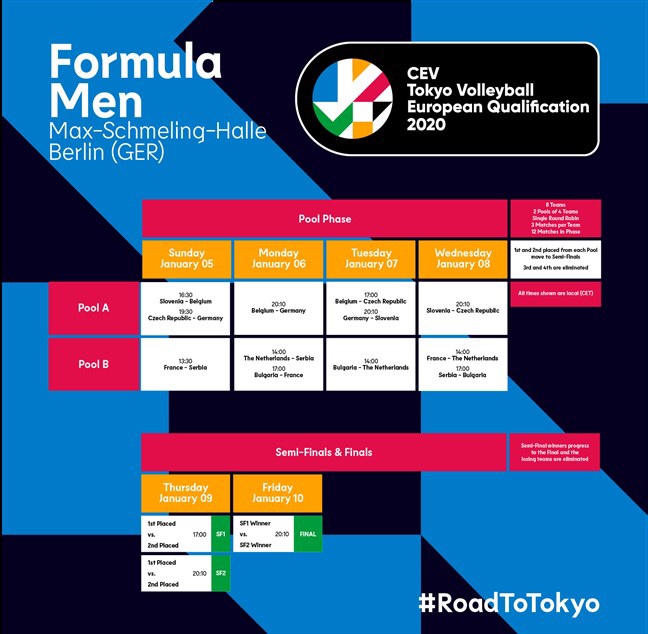 Durante o mês de novembro, a Confederação Europeia de Voleibol anunciou os grupos do Pré-Olímpico Europeu, nos dois naipes. Na categoria feminina, o qualificatório para as Olimpíadas acontece na cidade Apeldoorn, na Holanda, entre os dias 7 e 12 de Janeiro. Já na categoria masculina, a competição pela vaga do continente europeu ocorre em Berlim, na Alemanha, entre os dias 5 e 10 de Janeiro.