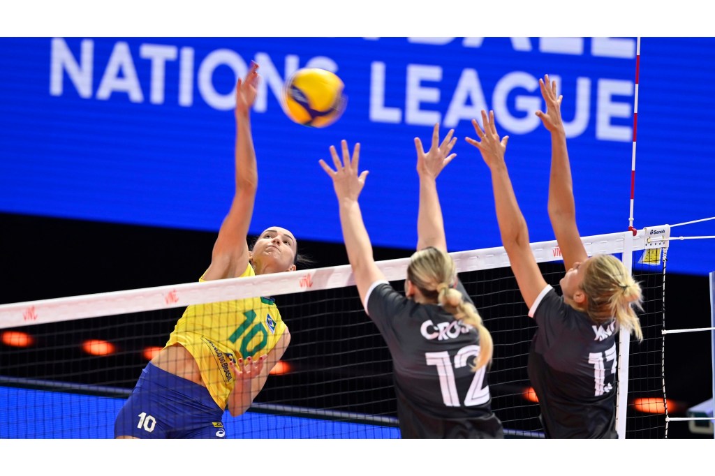 A seleção brasileira feminina de vôlei estreou com vitória na Liga das Nações 2021. Jogando contra o Canadá, na bolha de Rimini na Itália, após um susto na primeira parcial, o Brasil conquistou seu primeiro triunfo na competição, de virada, com parciais de 23/25, 25/11, 25/9, 25/14. O bloqueio brasileiro teve grande performance na partida, com 19 pontos diretos no fundamento. A ponteira brasileira Gabi foi a maior pontuadora do confronto. Ela anotou 15 pontos. Pelo Canadá, Van Ryk marcou 13 pontos. Amanhã, na próxima rodada, o Brasil enfrenta a República Dominicana, às 13h, com transmissão do SPORTV 2. O Canadá joga contra os Estados Unidos, às 16h, também com transmissão do SPORTV 2.