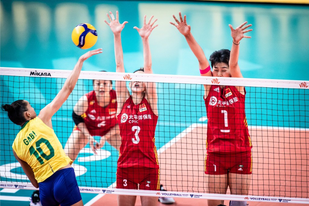 A seleção brasileira feminina de vôlei venceu a China, pela terceira etapa da Liga das Nações 2022. Jogando em Sófia, na Bulgária, as brasileiras derrotaram as chinesas, no tie-break, com parciais de 25/20, 25/23, 18/25, 21/25, 15/11. Foi a sétima vitória brasileira na competição. A ponteira brasileira Gabi foi o destaque individual da partida, com 28 pontos. Pela China, Yang Yang Li marcou 21 pontos.