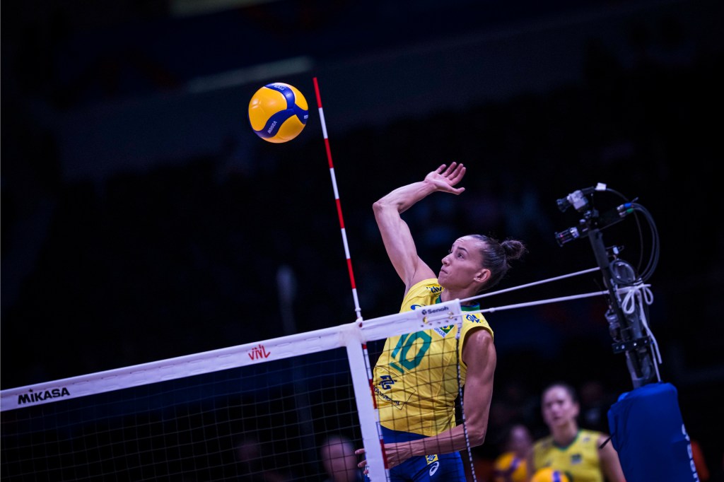 O Brasil é o primeiro semifinalista da Liga das Nações feminina de vôlei 2022. Jogando em Ancara, na Turquia, contra o Japão, as brasileiras avançaram de fase com uma vitória por 3×1, com parciais de 29/27, 28/26, 20/25, 25/14. A ponteira brasileira Gabi foi a maior pontuadora do confronto, com 23 pontos. Pelo Japão, a oposta Hayashi marcou 16 pontos. O Brasil errou muito mais do que as japonesas, principalmente nas duas primeiras parciais, mas o bloqueio compensou os números. Ao todo, foram 23 pontos cedidos em erros pelo Brasil contra 19 do Japão. Nos bloqueios, o Brasil marcou 16 pontos contra apenas 6 do adversário asiático. Além disso, as brasileiras tiveram paciência para confirmar os pontos nos contra-ataques, dado o intenso número de rallys.