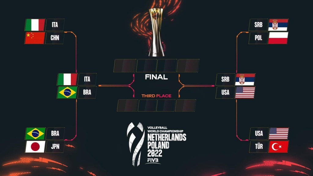Data hoje, a FIVB anunciou que adotou o formato de disputa do Mundial masculino 2022 também para o feminino, a partir de 2026. A mudança veio em boa hora! O formato de disputa do Mundial feminino não era confuso, mas problemático. Para que uma 2ª fase tão extensa, se os cruzamentos eliminatórios da competição eram dentro dos próprios grupos, divididos por sedes distintas? Realmente, era melhor ir logo adiante com o mata-mata, do que um número de jogos intermináveis que não valiam de nada! A questão agora é o inchaço do Mundial. A partir de 2026, o torneio contará com a adição de 8 países, passando de 24 para 32 o número de seleções participantes. Haja jogo de baixa qualidade, hein!