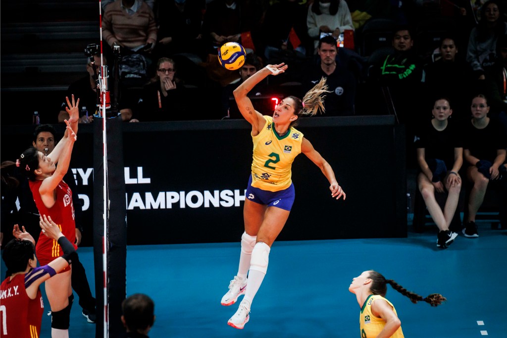 A seleção brasileira feminina de vôlei se recuperou no Mundial 2022, após derrota para o Japão. Jogando contra mais uma seleção asiática da competição, em partida válida pelo grupo D, as brasileiras venceram a China, por 3×1, com parciais de 23/25, 25/17, 25/22, 25/22. A oposta brasileira Tainara e a ponteira chinesa Yingying Li empataram na liderança da pontuação do jogo, com 22 pontos cada. Com o resultado, o Brasil quebrou a invencibilidade chinesa no Mundial 2022. Na próxima fase da competição, as brasileiras irão enfrentar no grupo E do torneio as seleções da Itália, Bélgica, Holanda e Porto Rico. A tabela dos jogos ainda será divulgada pela FIVB. Todos os jogos do Brasil serão transmitidos pelo SPORTV 2.
