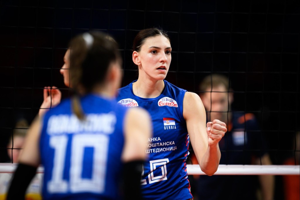 Na outra semifinal, Holanda e Sérvia entraram em quadra, na repetição da final de 2017. O técnico da Sérvia, Giovanni Guidetti, surpreendeu ao escalar sua levantadora considerada reserva, Drca. Com dificuldades no passe, a Holanda saiu perdendo para a Sérvia. Porém, a reação veio graças ao serviço, na segunda parcial. O técnico sérvio, então, escalou sua levantadora titular, Maja. Dali em diante, as holandesas tiveram a dianteira no placar, com quatro pontos de vantagem, nas duas parciais seguintes, mas não conseguiram segurar a Sérvia, nos momentos decisivos. No fim, vitória da bicampeã mundial, por 3×1.