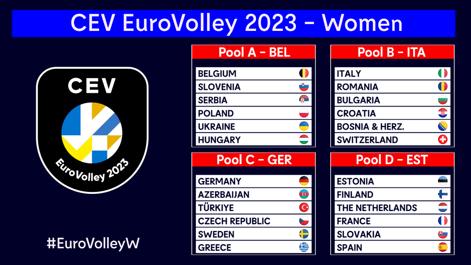 Começa nesta terça-feira, 15 de agosto, o Campeonato Europeu feminino de vôlei 2023. A competição será disputada em quatro sedes distantes na 1ª fase: Itália, Bélgica, Alemanha e Estônia. Serão 24 seleções, divididas em 4 grupos com 6 países cada. No grupo A estão: Bélgica, Eslovênia, Polônia, Sérvia, Ucrânia e Hungria. No grupo B: Itália, Romênia, Bulgária, Croácia, Bósnia e Suíça. No grupo C: Alemanha, Azerbaijão, Turquia, República Tcheca, Suécia e Grécia. No grupo D: Estônia, Finlândia, Holanda, França, Eslováquia e Espanha. As quatro melhores de cada grupo avançam para os playoffs. As finais ocorrem em Bruxelas na Bélgica. Devido à guerra na Ucrânia, a Rússia não participará do torneio. Para o jogo de abertura desta terça-feira, entre a Italia, atual campeã da competição, e a Romênia, em Verona, o torneio promete um grande espetáculo.