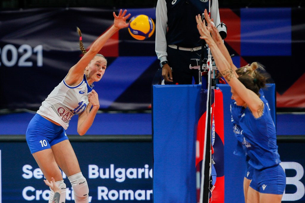 A jovem russa Fedorovtseva no ataque/Divulgação CEV