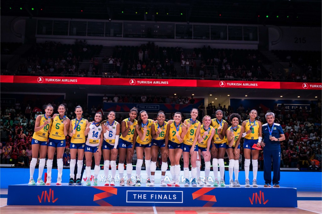A seleção feminina brasileira foi vice-campeã da VNL, pela terceira vez consecutiva/Volleyball World/Divulgação FIVB