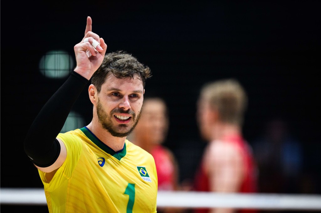 O levantador Bruninho falou sobre o crescimento dos centrais brasileiros na VNL/Volleyball World/Divulgação FIVB