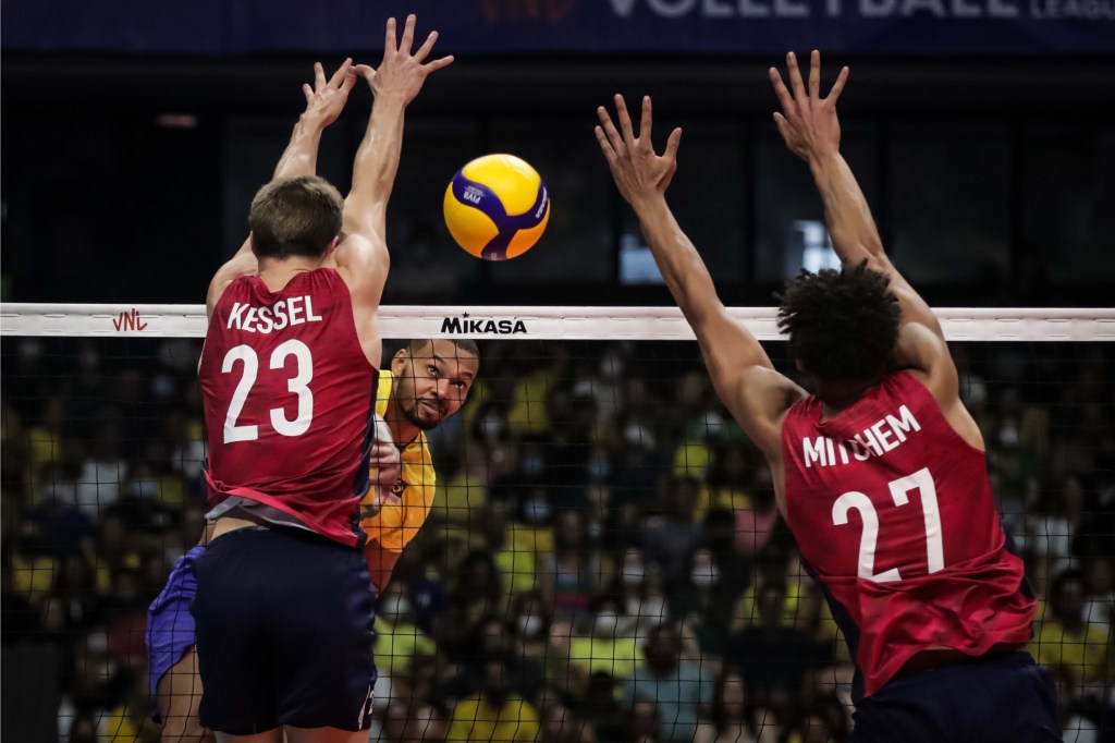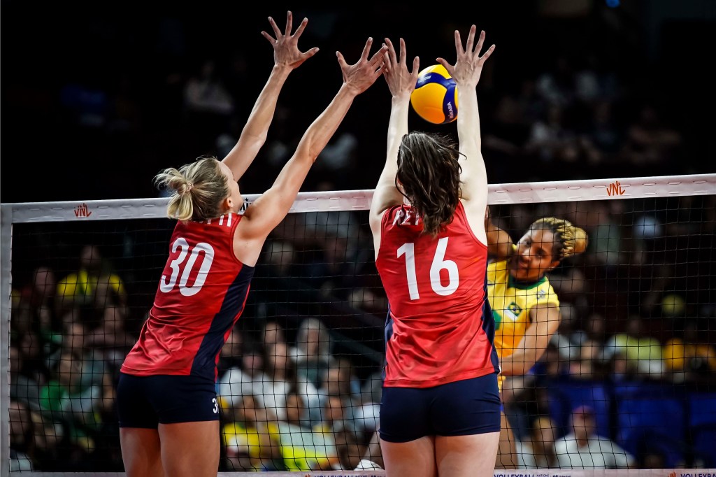 O bloqueio norte-americano também marcou 11 pontos no duelo com o Brasil/Volleyball World/Divulgação FIVB