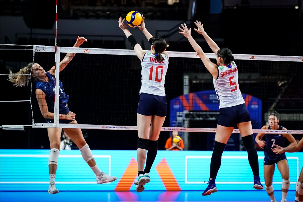 O bloqueio japonês trabalhou bem na primeira semana de VNL/Volleyball World/Divulgação FIVB