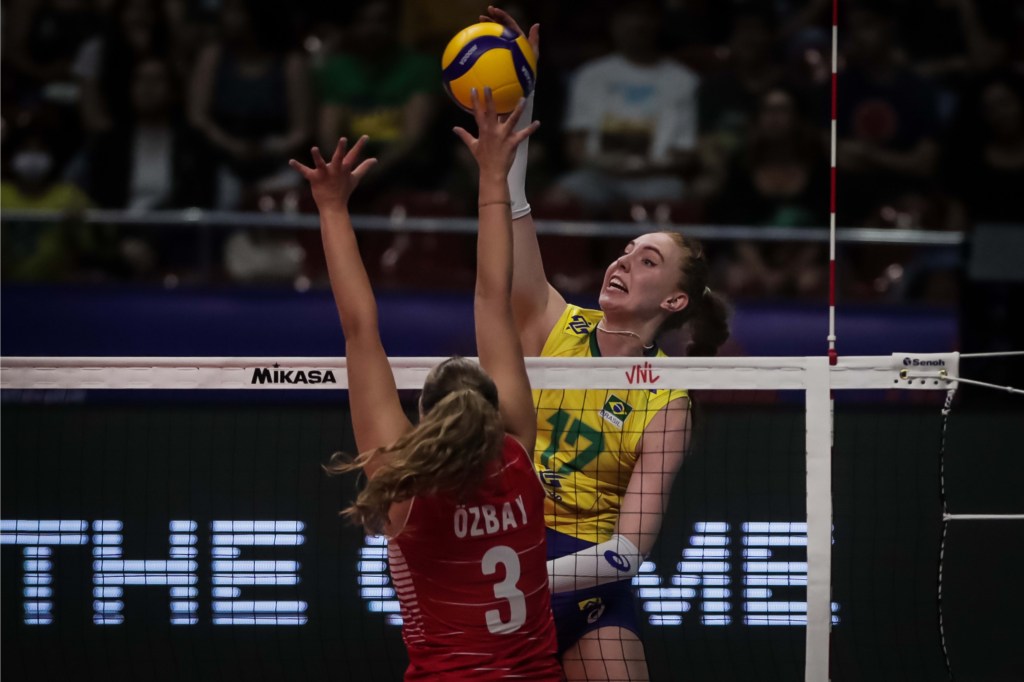 Pela Liga das Nações 2022, a seleção brasileira feminina de vôlei venceu a Turquia. Jogando em casa, na capital federal, as brasileiras superaram as turcas, por 3×1, com parciais de 19/25, 25/23, 25/23, 25/23. Em disputa equilibrada, o confronto foi decidido no serviço. Enquanto sacava melhor, a Turquia tinha o controle do jogo. Com algumas substituições, o Brasil recuperou a confiança pressionando no fundamento. As brasileiras também foram superiores no bloqueio. Mesmo com a derrota, a oposta turca Karakurt foi a maior pontuadora da partida, com 21 pontos. Pelo Brasil, apesar de muito marcada, Gabi anotou 20 pontos. Na próxima rodada da VNL 2022, as brasileiras enfrentam a Holanda, nesta quinta-feira, 16 de Junho, às 21h, com transmissão do SPORTV 2. Já a Turquia, folga na rodada.