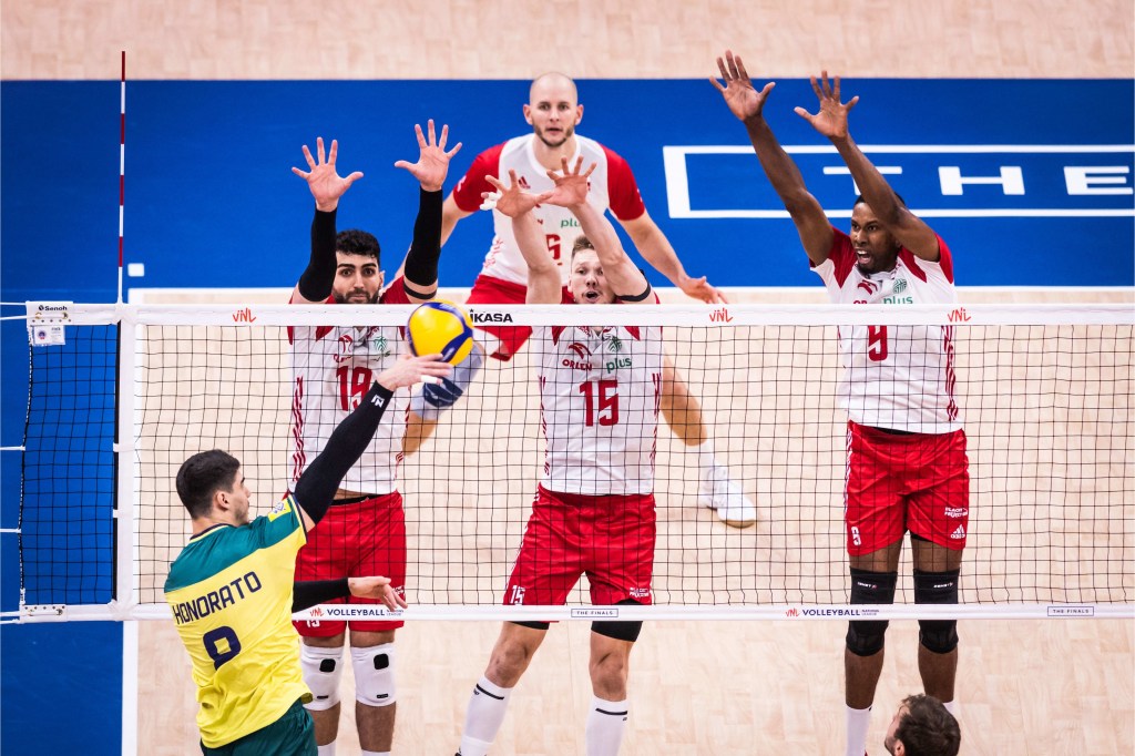 O bloqueio polonês marcou 10 pontos no jogo contra 5 pontos do Brasil/Volleyball World/FIVB