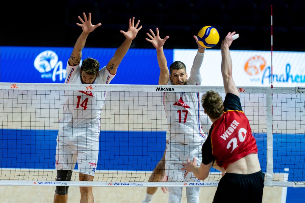 A França se garantiu nas finais da Liga das Nações masculina 2023. Atual campeã olímpica e da VNL, a França conquistou classificação na bacia das almas. Graças a uma combinação de resultados, a França ficou com a última vaga das quartas de final. Jogando em Anaheim, nos Estados Unidos, os franceses bateram a Alemanha, de virada, por 3×1, com parciais de 21/25, 25/20, 25/22, 25/21. O técnico da França, Andrea Giani, pareceu não se importar muito com a classificação, já que não entrou em quadra com que a França tem de melhor. Ao contrário da noite de ontem, contra os Estados Unidos, a França errou menos que seu adversário, sendo mais eficiente no bloqueio. Mesmo com a derrota, o alemão Weber foi o maior pontuador do jogo, com 18 pontos. Pela França, o ponteiro Clevenot marcou 17 pontos. Com a vitória, a França aguarda a definição do seu adversário nas quartas de final que pode ser Japão ou Estados Unidos. Já a Alemanha está eliminada da competição.