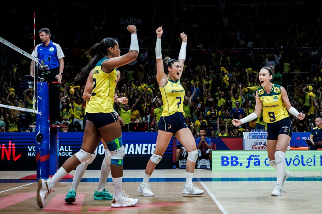 O Brasil lidera a VNL feminina 2024, com 9 pontos, 3 vitórias em 3 jogos/Divulgação/Volleyball World