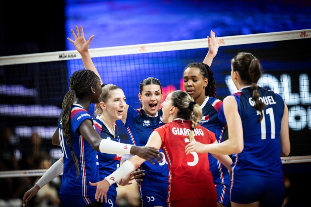 Anfitriã dos Jogos Olímpicos em 2024, a seleção francesa fez sua estreia na história da Liga das Nações feminina. A França ganhou o direito de disputar a VNL 24 após vencer a Challenger Cup no ano passado. Como seleção desafiante, briga para permanecer na Liga das Nações em 2025, com as seleções do Canadá, República Dominicana, Bulgária e Polônia. E ao que parece, as francesas deram o primeiro passo para continuar na competição. Depois de perder os dois primeiros jogos contra Alemanha e Polônia, a França venceu o confronto direto com a Bulgária, por 3×1. Também não fizeram feio diante da Turquia, atual campeã da competição. Olho nas francesas!