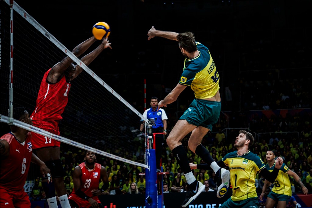 O bloqueio cubano marcou 10 pontos diretos no fundamento contra o Brasil/Divulgação/FIVB/Volleyball World