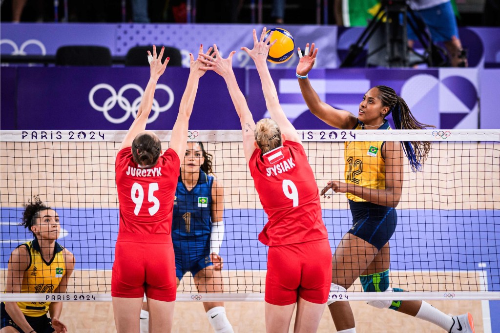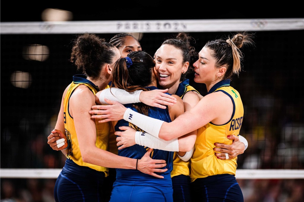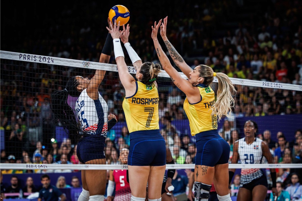 O décimo primeiro dia de competições nos Jogos Olímpicos de Paris definiu os semifinalistas do voleibol feminino. Turquia, Brasil, Estados Unidos, Itália, são as quatro seleções que disputarão medalhas na edição de 2024 das Olimpíadas. Como noticiado mais cedo pelo blog, o Brasil avançou de fase após vencer a República Dominicana. Foi a quarta vitória brasileira em Paris pelo placar de 3×0. Nas semifinais do torneio olímpico de voleibol feminino, o Brasil enfrentará os Estados Unidos, na reedição da última final olímpica. No outro confronto de semifinal, a Itália disputa um lugar na decisão do ouro contra a Turquia. Confira abaixo, o resumo da fase quartas de final do voleibol em Paris entre as mulheres.