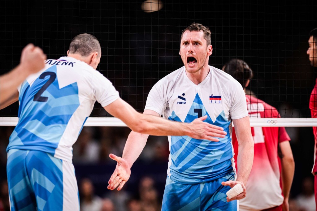 Depois da classificação do Brasil, na sequência da rodada, a França enfrentou a Eslovênia, pelo grupo A do torneio olímpico do voleibol masculino. Em jogo, a liderança da chave. A Eslovênia iniciou o confronto arrasando a França no serviço, abrindo 1×0 no placar. Na segunda parcial, começaram as viradas da partida. Com 22/20 no placar contra, a Eslovênia ganhou o segundo set por 25/23. Uma modificação do técnico da Eslovênia para aumentar o bloqueio na rede foi determinante para virada. Na terceira parcial, a Eslovênia teve três chances de fechar o jogo em 3×0, mas acabou perdendo para França por 27/25. A quarta parcial foi amplamente dominada pela França, graças ao bloqueio. Ao todo, foram 4 pontos marcados pelos franceses no fundamento. No tie-break, a Eslovênia começou melhor, abrindo três pontos de vantagem, mas a França reagiu. A Eslovênia retomou a dianteira com pressão na linha de passe francesa, através do serviço. Uma marcação polêmica da arbitragem contra os donos da casa, deu o match point para Eslovênia. Dessa vez, a Eslovênia não desperdiçou a chance, batendo os atuais campeões olímpicos, por 3×2.