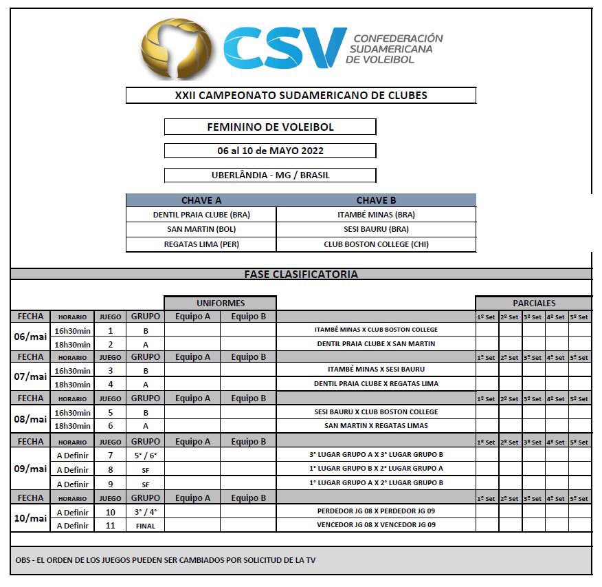 Completou o pódio da competição, na 3ª posição, o Sesi/Bauru, após vencer o Regatas Lima do Peru, por 3×0, na disputa do bronze.