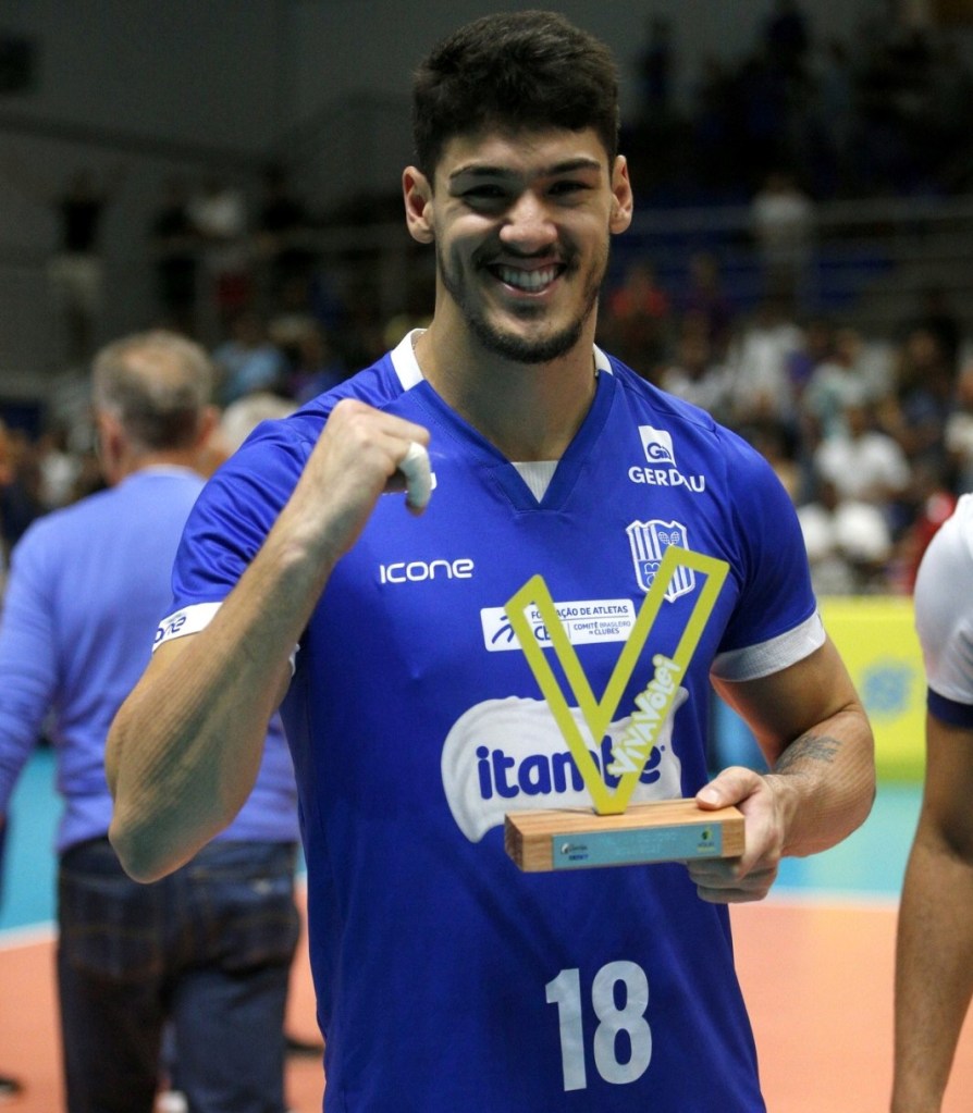 O ponteiro do Minas, Honorato, com o troféu Viva Vôlei/Divulgação MTC/Orlando Bento