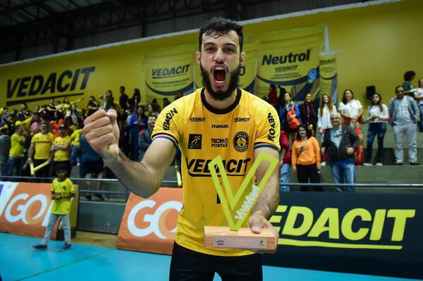 O ponteiro Lucas Cho Cho com o troféu Viva Vôlei/Mauro Horita