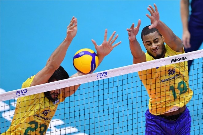 BRASIL Bruninho (2), Alan (15), Leal (14), Lucarelli (10), Lucão (9), Flávio (8), Thales (L). Entraram: Maurício Borges (0), Cachopa (0), Filipe Roque (1), Isac (0). Técnico: Renan Dal Zotto